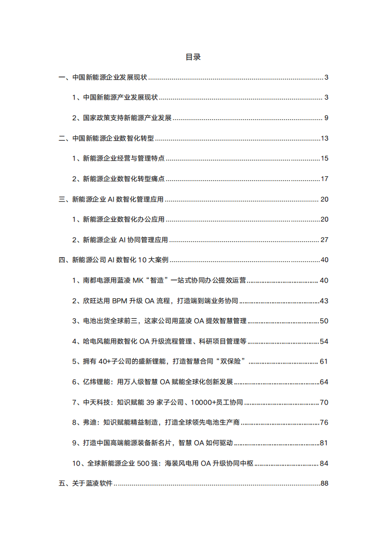 《AI专题:2025年中国新能源企业AI数智化转型白皮书》由蓝凌研究院编制,聚焦中国新能源企业AI数智化转型,涵盖产业现状、转型痛点、应用场景、典型案例及服务方介绍。产业现状方面,2025年中国新能源产业市场规模突破6万亿元,占全球38%,风电、光伏装机量全球领先,新型储能、新能源汽车快速发展,国家出台多项政策支持“人工智能+能源”融合,如《关于推进“人工智能+”能源高质量发展的实施意见》等,明确2027年与2030年发展目标。新能源企业经营管理具有技术与资本密集、政策驱动等特点,但数智化转型面临标准化不足、数据质量待提升、系统安全风险、成本高、人才短缺及战略规划缺失等痛点。应用场景上,蓝凌推出“AI+协同”数智化OA解决方案,支持大模型私有化部署,升级“文、会、事、人、财、物”全链路协同,涵盖统一门户、流程管理、公文管理等模块,还在AI+公文、流程、知识、合同等场景落地,提升效率与合规性。典型案例包括南都电源用蓝凌MK平台提效运营、欣旺达用BPM升级OA流程、润阳新能源搭建统一门户与BPM流程引擎、哈电风能升级流程与科研项目管理、盛新锂能打造智慧合同“双保险”等10家企业,展示了不同转型路径与成效。蓝凌软件作为服务方,为5万家组织提供数智化产品方案,服务众多新能源企业,助力其通过AI数智化转型实现降本增效与高质量发展。