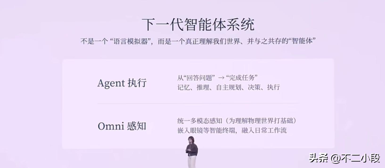 更有意思的是,罗福莉在演讲中坦承,她所说的“物理世界导向是通往AGI的关键”是一个“非共识”。她提到了包括Ilya Sutskever在内的一些顶尖研究者,依然坚信在纯粹的语言空间里就能实现AGI。