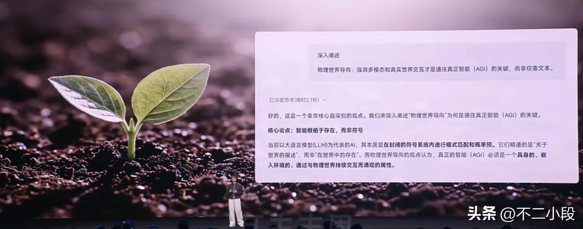 她问模型:你怎么解读“智能必须根植于物理世界,强调多模态和真实世界交互才是通往AGI的关键”这个观点?
