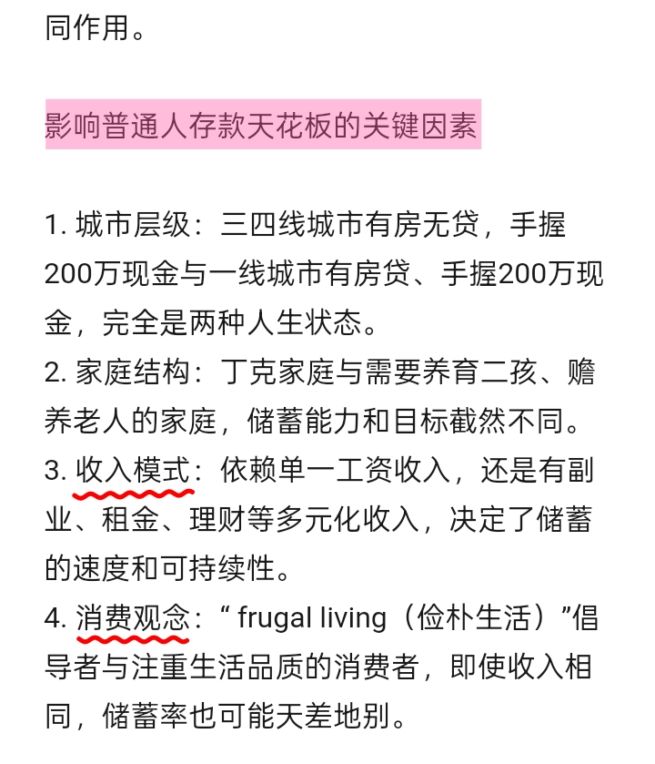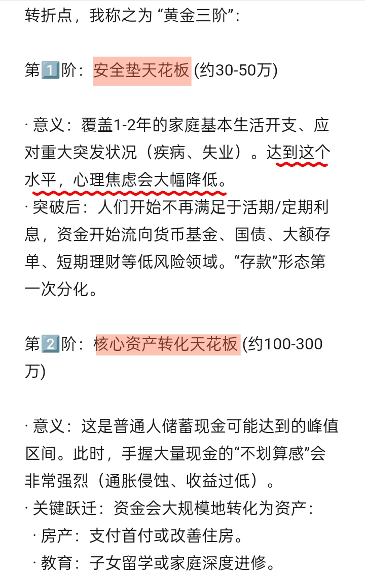 · 突破300万以上的纯现金储蓄,通常需要收入结构的质变(如企业分红、成功副业、资产收益等),此时财富形态早已脱离“存款”范畴。