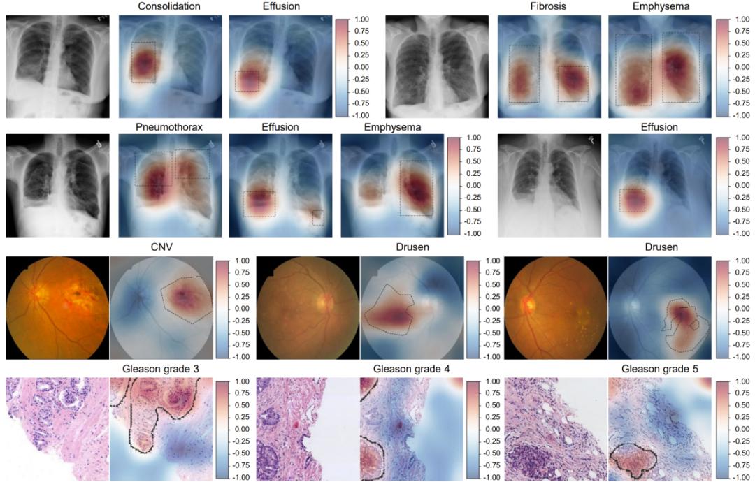 研究团队在胸部 X 光、眼底影像和组织病理图像三种典型医学影像模态上对 AFLoc 进行了系统验证,结果显示模型均表现出优异性能。