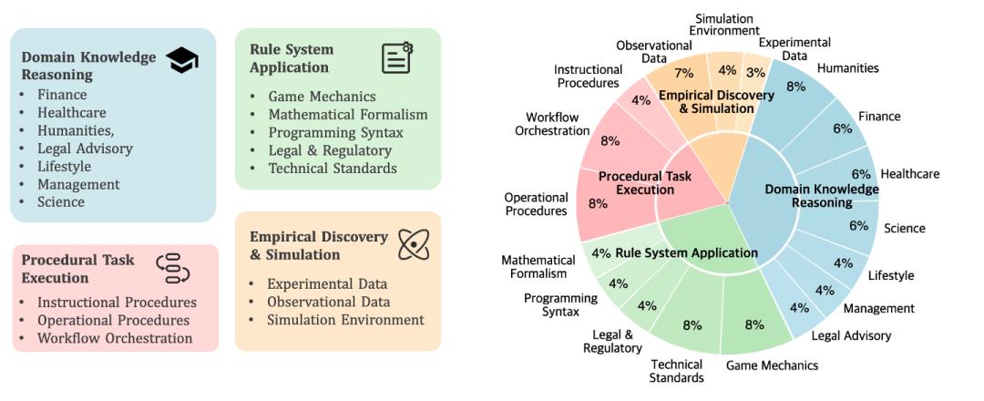 - 经验发现与模拟: Context 提供复杂系统内的实验数据、观测记录或模拟环境。与前几类涉及演绎推理不同,这一类专注于归纳推理,也是最具挑战性的。模型必须从数据中发现潜在的定律或结论,并应用它们来解决任务。