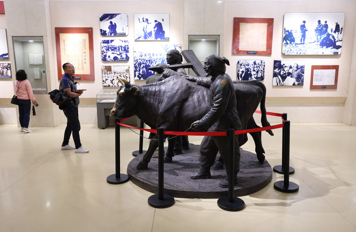 025年10月8日,游客在河北平山县西柏坡纪念馆参观。新华社发(梁子栋摄)
