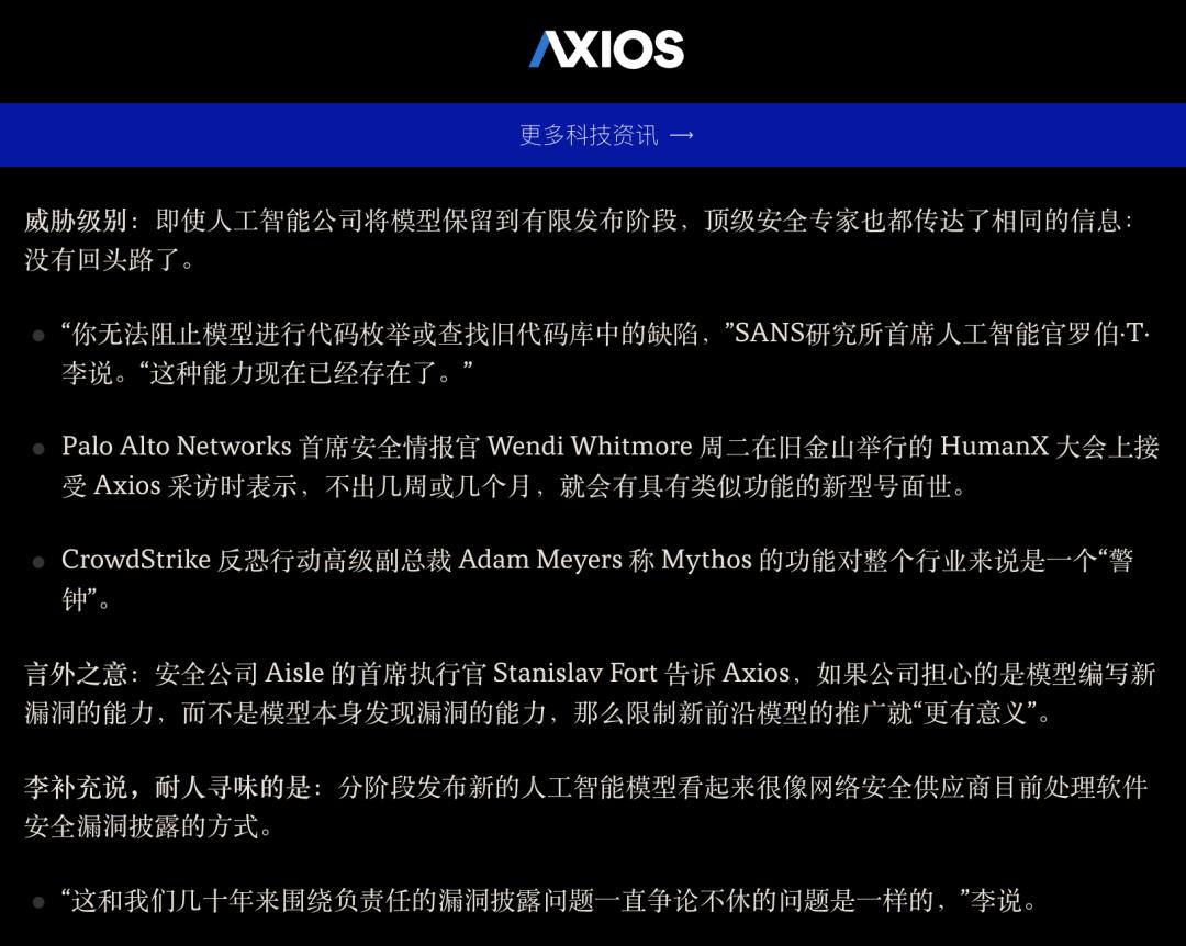 而且最讽刺的是,真正把这件事推到公众面前的,还不是黑客真的用它打爆了什么系统,而是模型公司自己先害怕了。