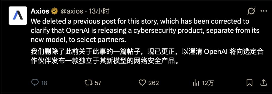 但后面 Axios 通过进一步求证 OpenAI,自己修正了表述。