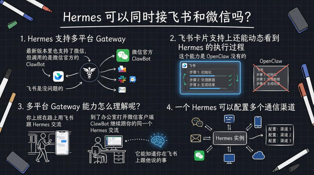 8、Hermes 可以同时接飞书和微信吗?