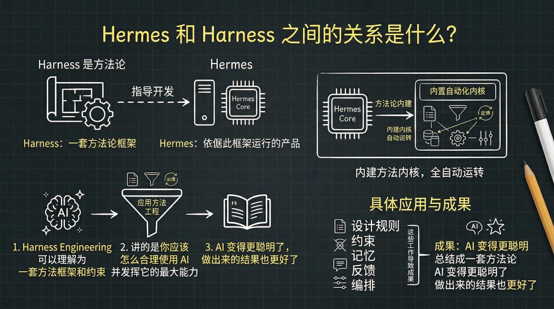 用大白话说,Harness 是方法论,Hermes 是依据这个方法论做出来的产品。