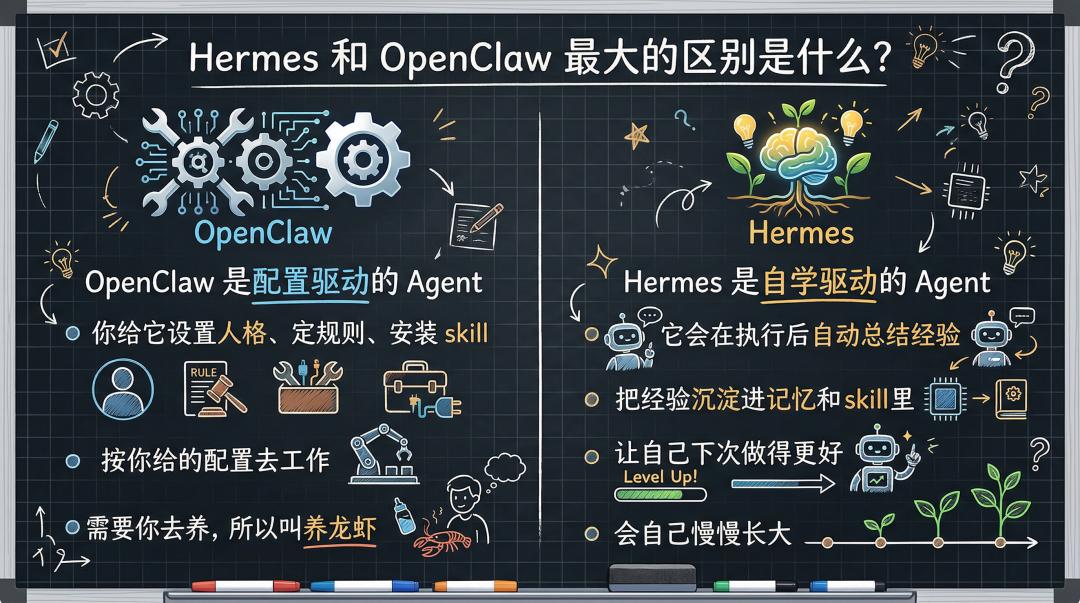 2、Hermes 和 OpenClaw 最大的区别是什么?