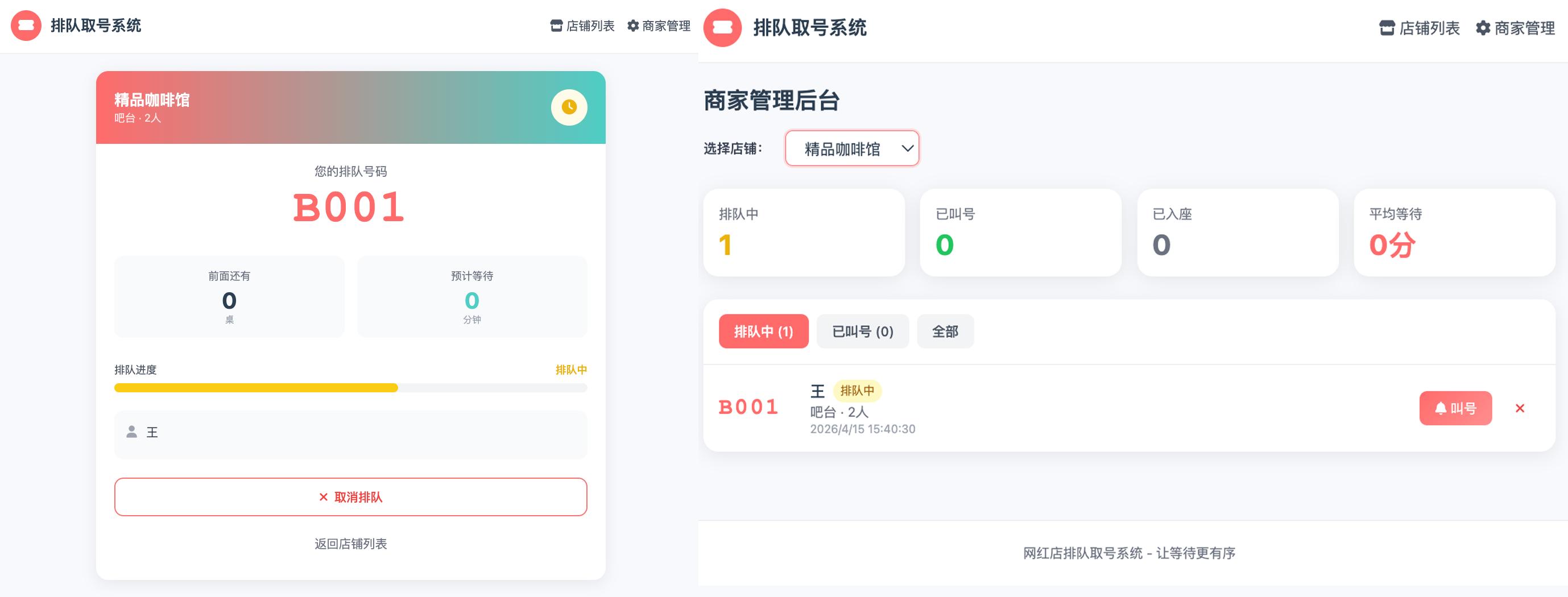 在商家端,商家后台实时展示排队中、已叫号、已入座数据、平均等待时长,支持多维度筛选。