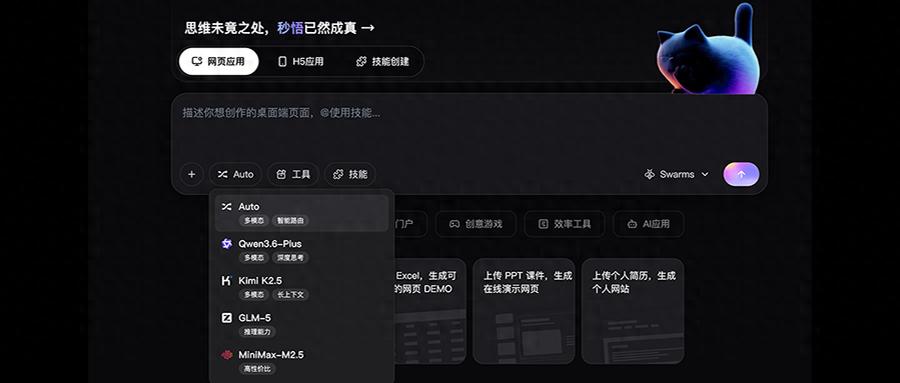 最后其集成多家国产主流模型,集各家之所长,一口气上线千问、Kimi、GLM、MiniMax四大模型。