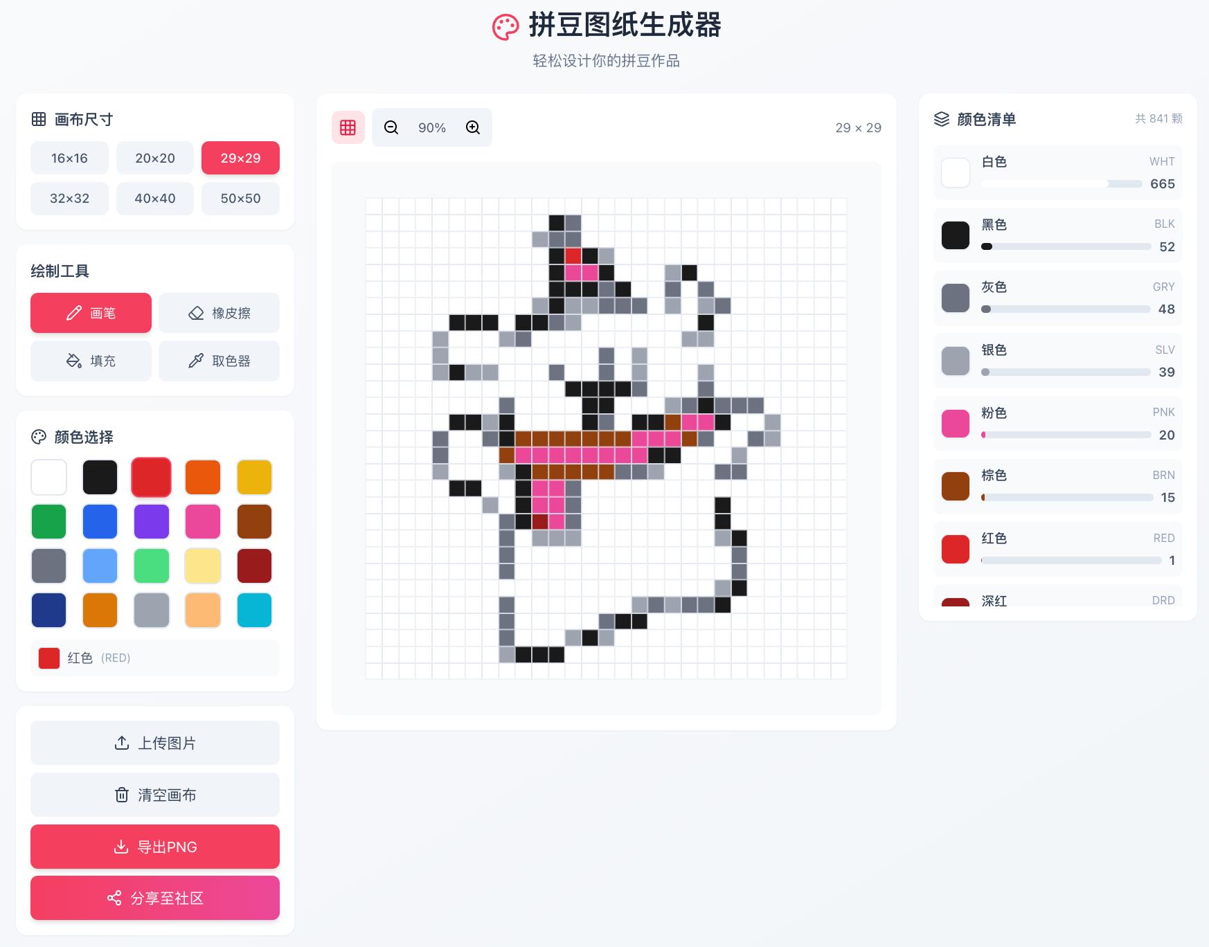 智东西还让妙悟生成了拼豆图纸生成器,只需上传图片下载图纸就能随时随地想拼就拼。