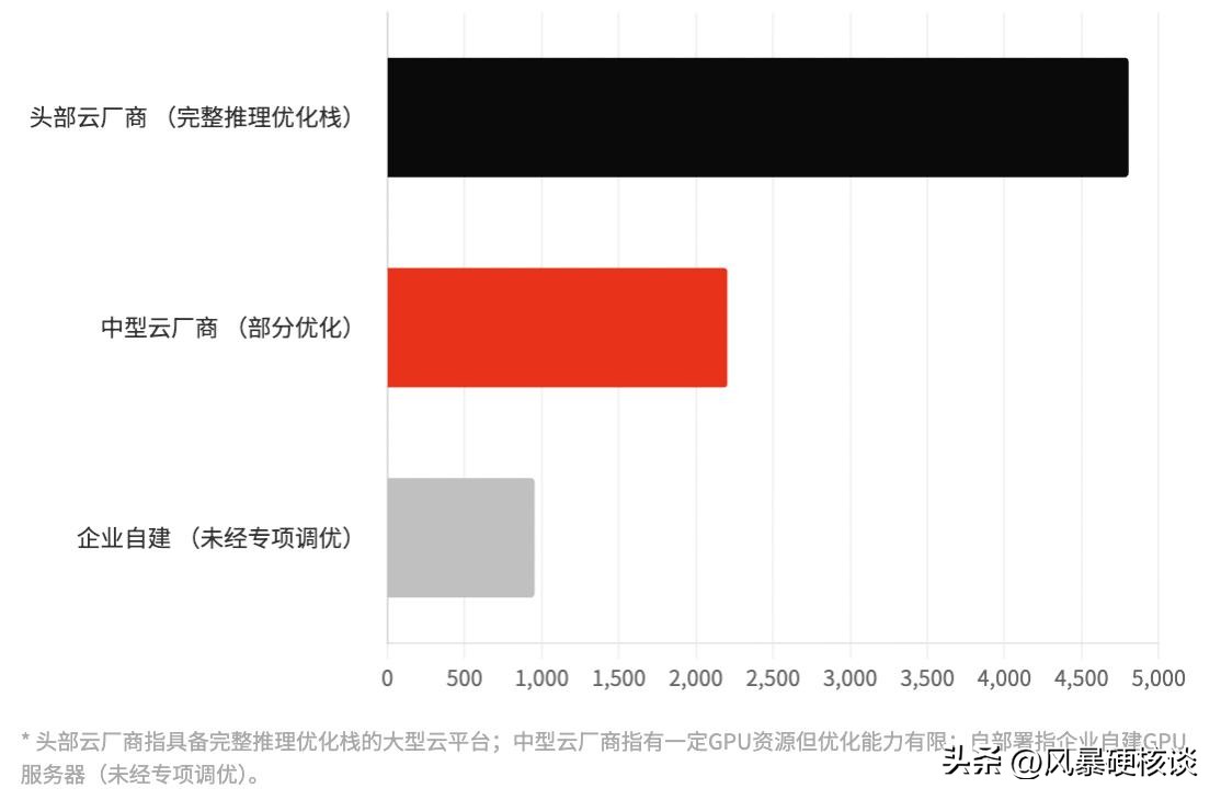 同样跑DeepSeek-R1,头部云厂商的推理效率可以比企业自建高出3到5倍。这意味着同等算力投入下,云厂商能服务更多并发,单位成本更低。