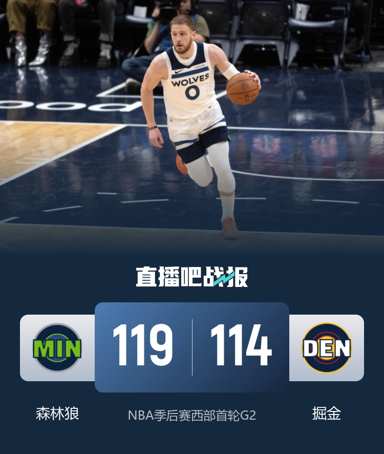 直播吧4月21日讯 NBA季后赛首轮G2,掘金继续主场迎战森林狼。G1掘金11分优势取胜,目前1-0领先森林狼。