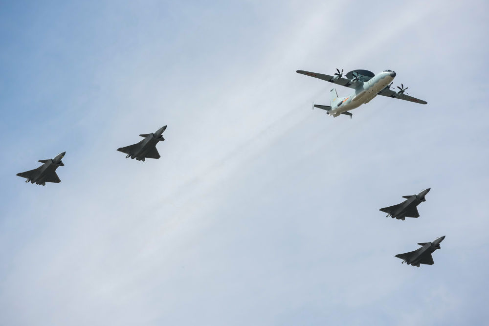 ↑9月19日,2025年空军航空开放活动和长春航空展上,空警-500和歼-20编队通场。新华社记者 张楠 摄