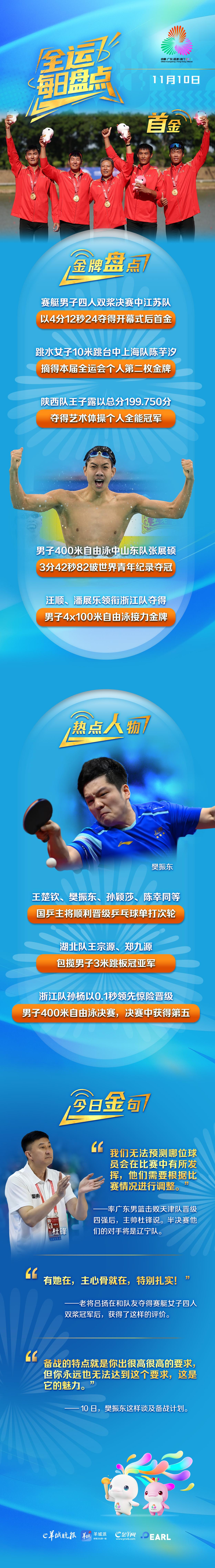 11月10日,第十五届全国运动会迎来开幕式后的首个比赛日。来自全国各地的运动健儿们在游泳、跳水、赛艇、艺术体操、举重等多个项目中展开角逐。
