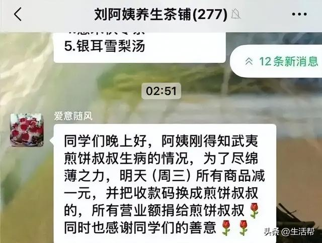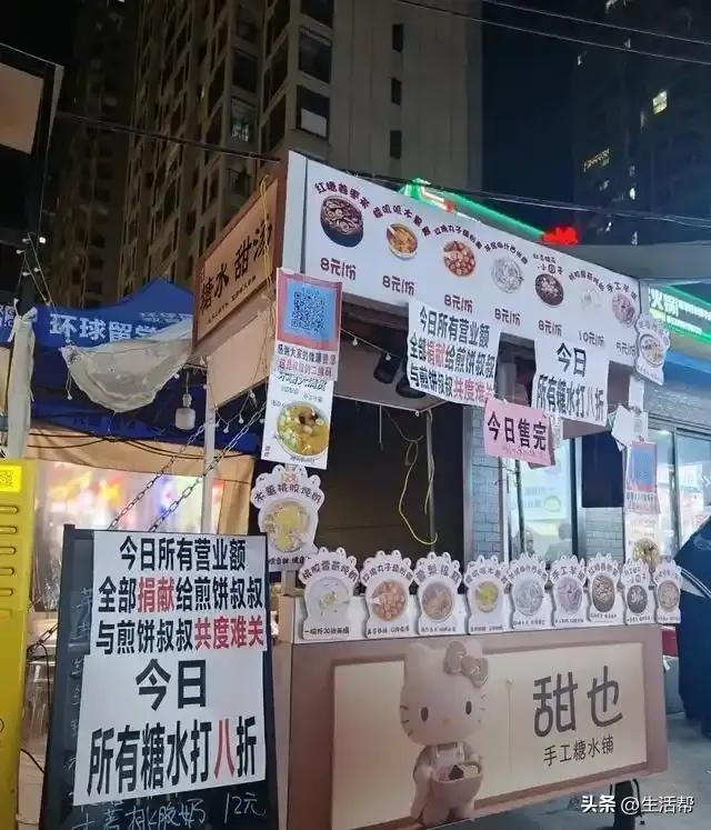路过的人发现,摊主们纷纷贴出通知“捐赠今日营业额与煎饼叔叔共渡难关”。