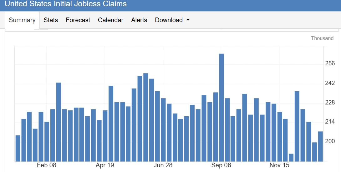 周四另行公布的数据显示,截至1月3日当周(包含元旦假期),首次申请失业金人数增加8,000人至208,000人,续请失业金人数(衡量长期领取福利救济金人数的一项指标)在前一周上升至191万人,略高于市场普遍预期的190万人。