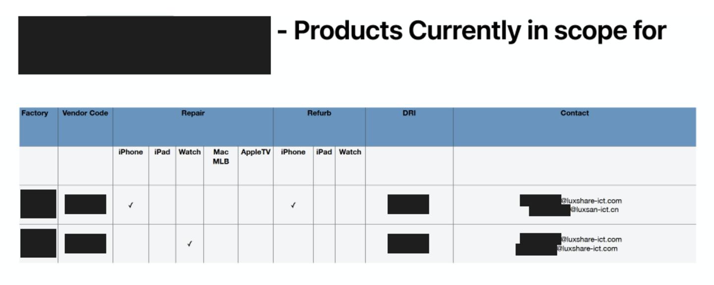 据称涉及苹果和立讯精密项目的信息。