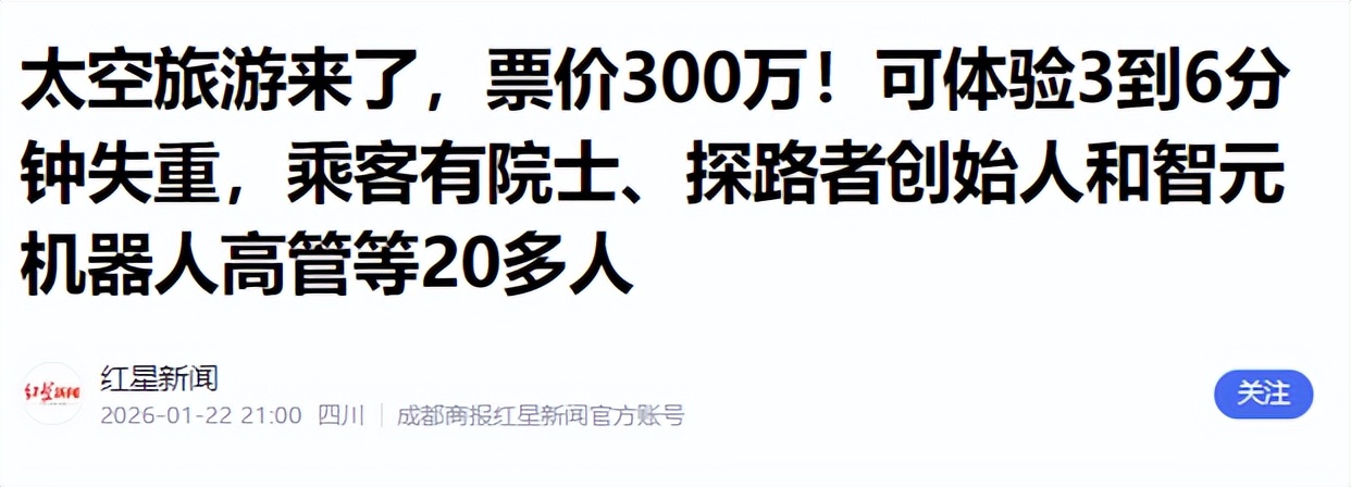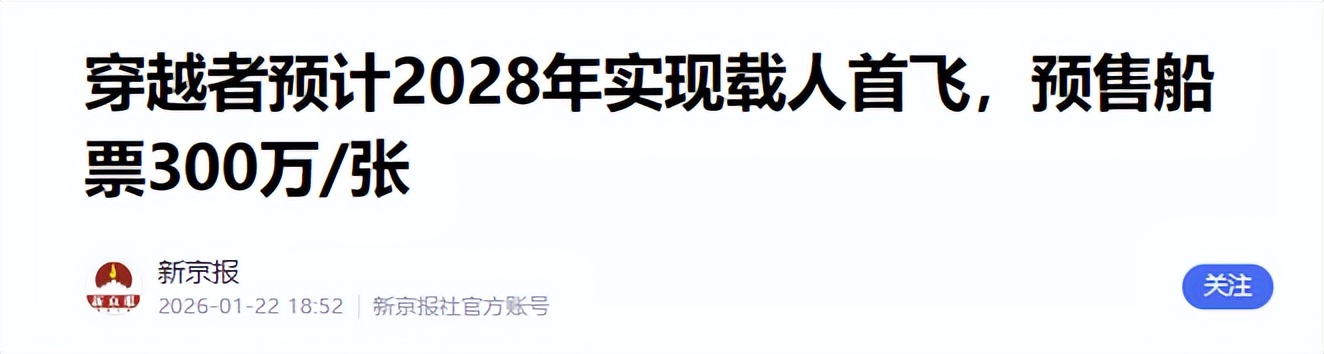 2026年1月,“穿越者壹号”飞船正式开启预售,300万一张的天价船票瞬间引爆舆论。