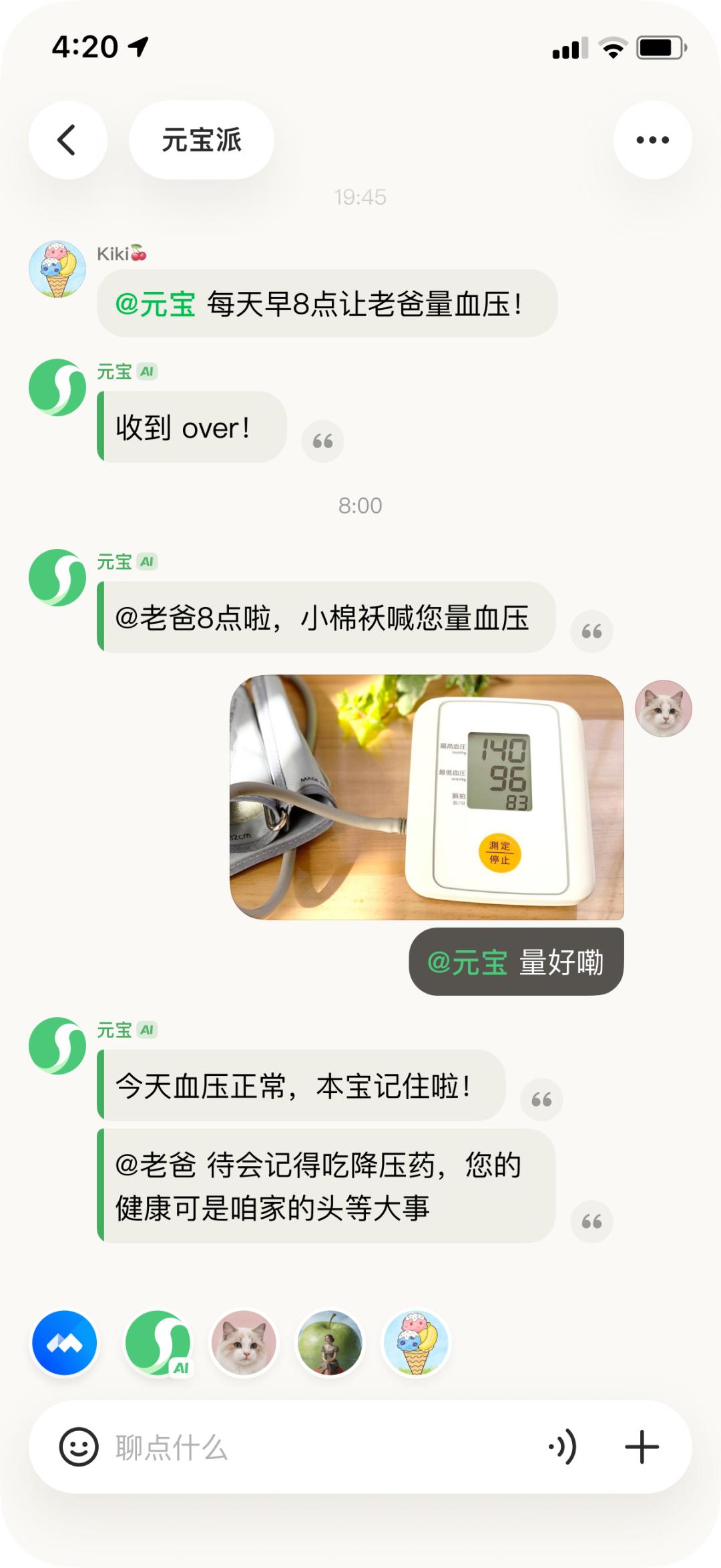 如果你是跟父母亲人建了一个“相亲相爱一家人元宝派”,那么你再也不用担心家里的老年人不听话,乱信谣言,因为元宝会在你工作忙的时候随时帮你。
