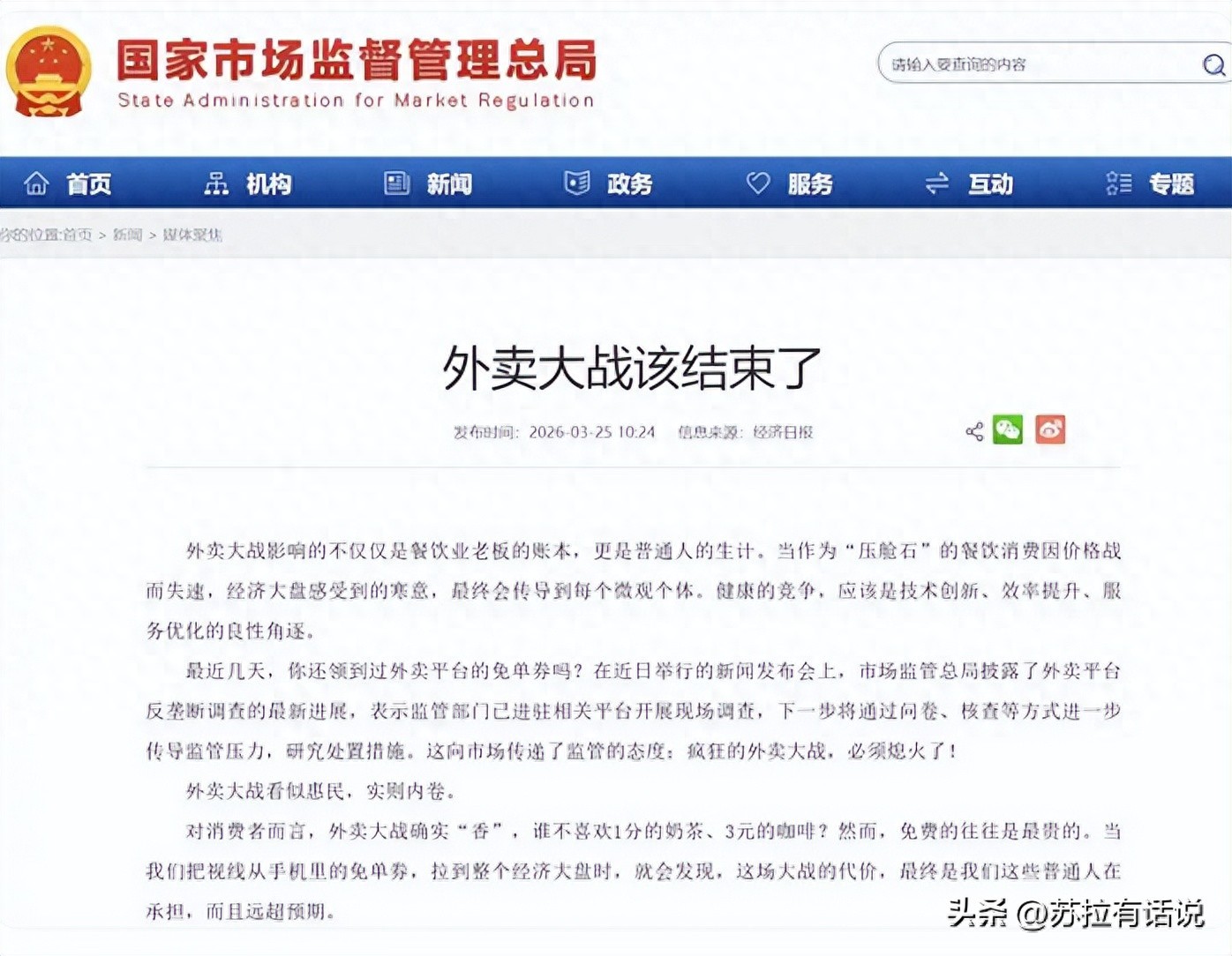 这场没有赢家的混战,终于引来了监管重拳。经济日报直接八个字定调:外卖大战该结束了!监管部门更是直接进驻平台,开展现场调查,彻底叫停这种恶性补贴竞争。