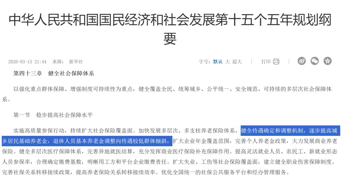 作为十五五的第一年,今年两会后国家发布了重要的十五五工作规划相关文件,其中提到要继续健全社会保障体系,对于养老待遇要健全调整机制,向退休待遇较低的人员倾斜调整。那么今年若是养老金继续调整,养老金低于3162元的可多涨100元吗?一起来看看。