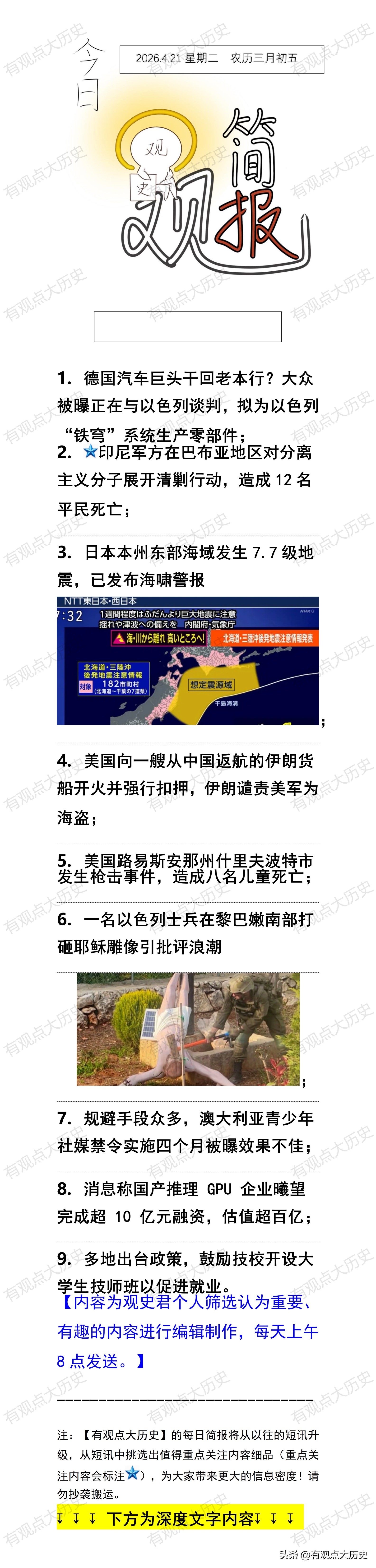 今天我们重点关注第2条简讯:印尼军方在巴布亚地区对分离主义分子展开清剿行动,造成12名平民死亡。注:“巴布亚”是马来语/印尼语对整个新几内亚岛的称呼。