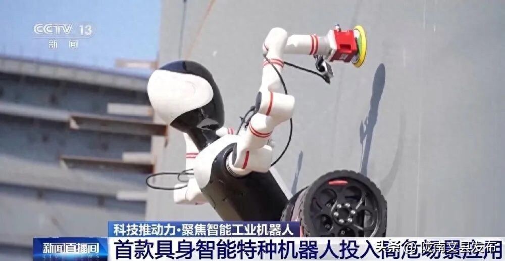 总台央视记者 古峻岭:我们现在看到的是我国首个具身智能特种机器人在作业,它如履平地的工作场景,竟然是一个垂直的墙面。