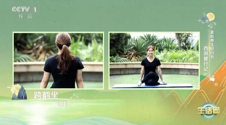 左腿在上,右腿在下,双腿叠放后坐下,后背挺直,想象自己是一只丹顶鹤,脊柱向上伸展,手自然放在大腿上。