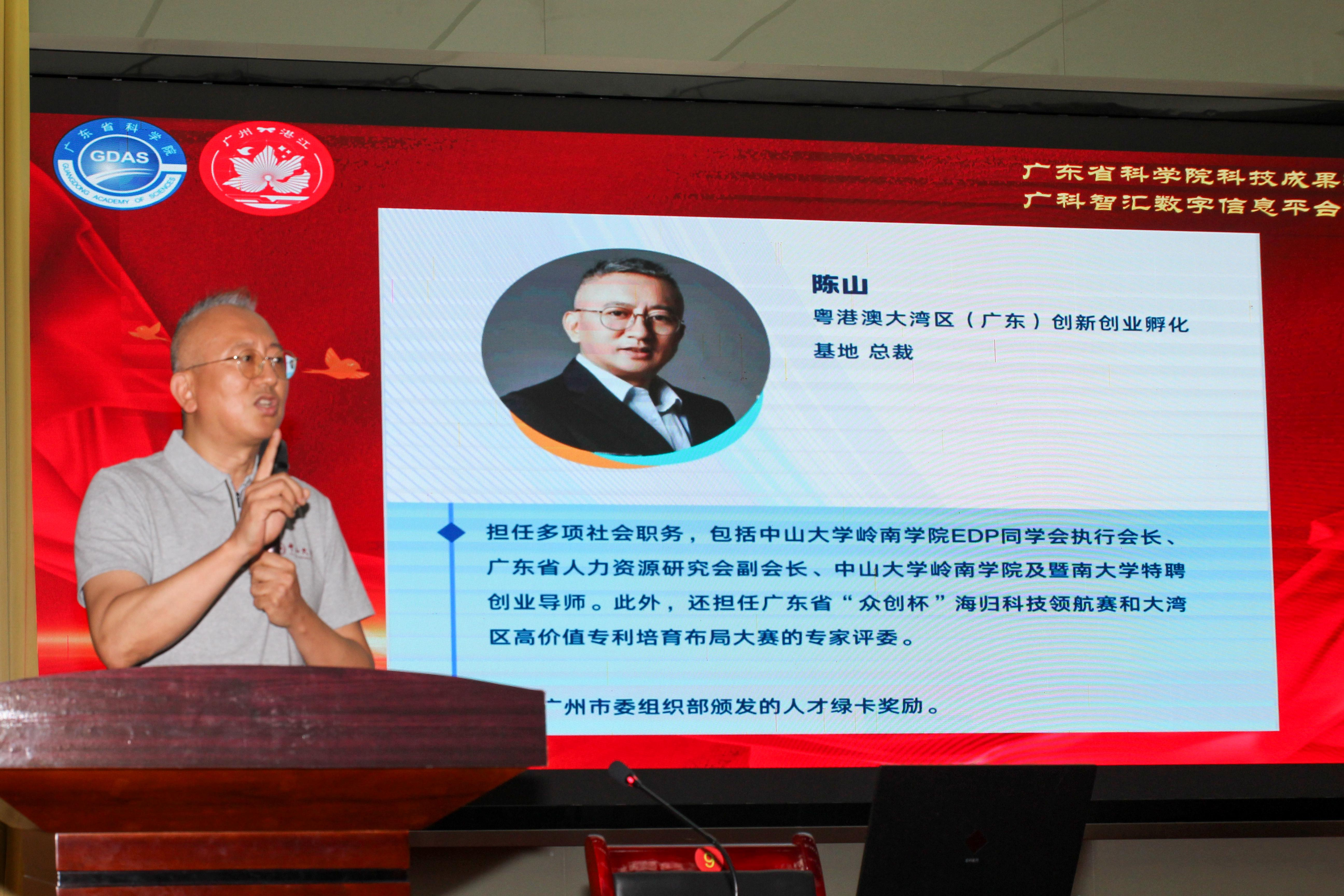 2025年9月5日下午,广东省科学院科技成果转化分享会暨广科智汇数字信息平台高端商询会在湛江市赤坎区公共文化服务中心成功举办。本次会议由广东省科学院、湛江市赤坎区人民政府指导,湛江市科学技术局、广东省科学院南繁种业研究所、广东省科学院控股有限公司主办,湛江赤坎区科工贸局、广科双创产业发展有限公司、广东省科学院湛江产业科技服务中心有限公司承办。