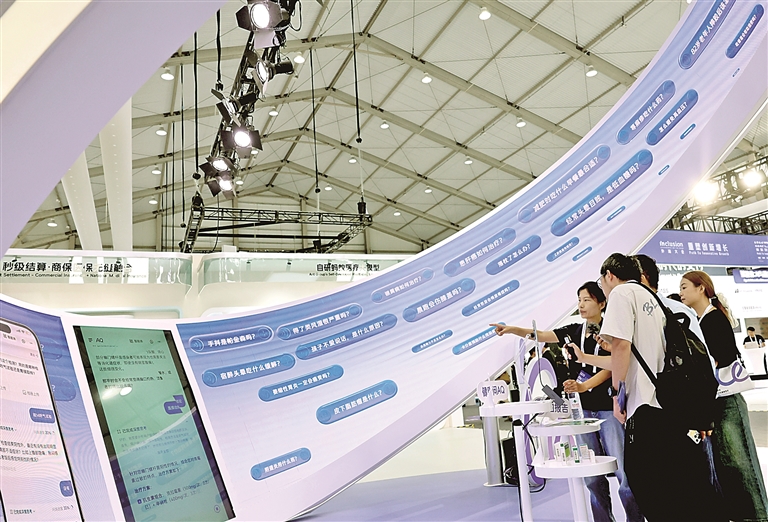参观者在上海一展会上了解人工智能医疗产品。新华社发