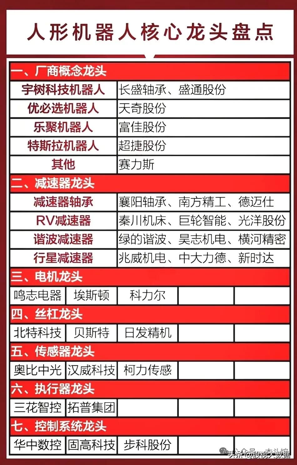 国内人形机器人行业分类龙头企业值得关注,具体名单见下方配图。