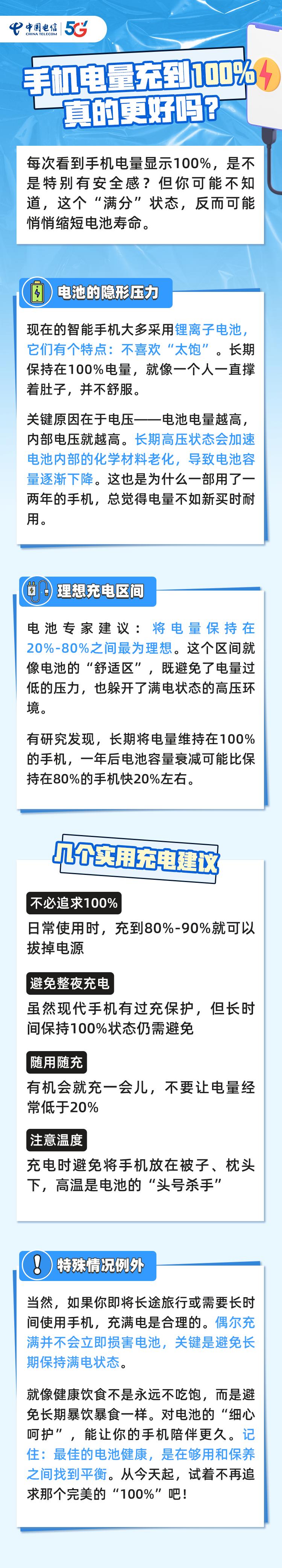 手机电量充到100%真的更好吗?