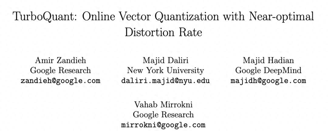 论文标题及作者信息 / TurboQuant论文的标题、作者及所属机构信息
