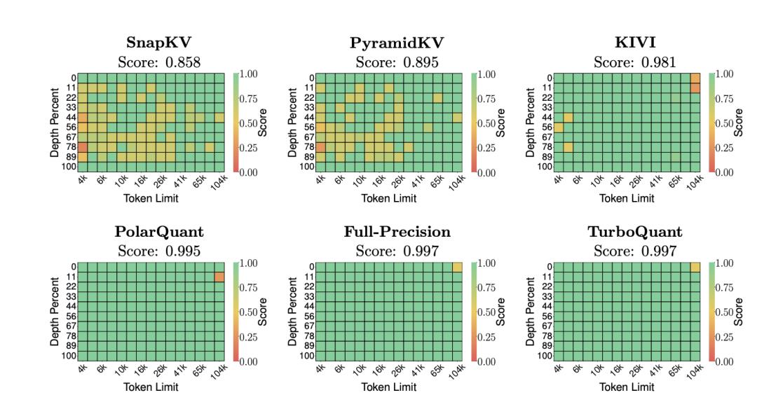 TurboQuant的突破,恰恰瞄准了这个行业痛点。它通过极坐标变换+量化JL变换的组合拳,彻底消除了量化常数的额外开销,将压缩比从行业基线的2.6倍直接拉到6倍以上,还能在“大海捞针”测试中取得与全精度缓存完全一致的成绩。